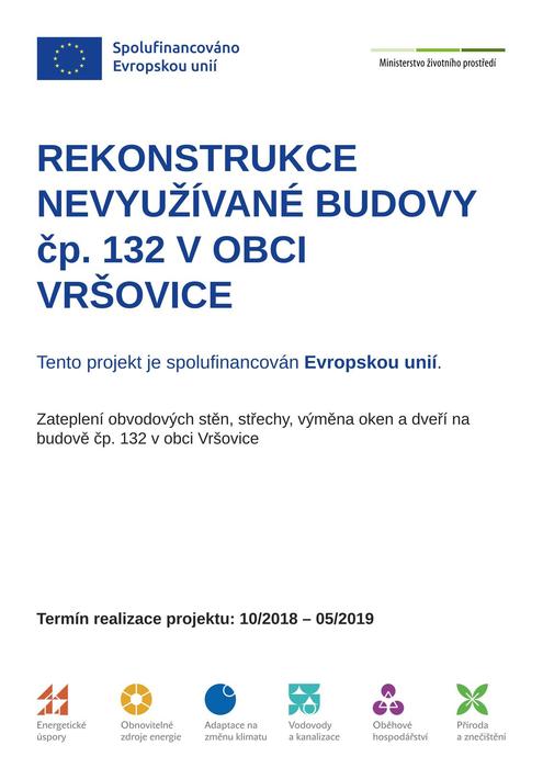 Rekonstrukce nevyužívané budovy čp. 132 v obci Vršovice, realizováno v letech 2018 - 2019 za finanční podpory z Operačního programu životního prostředí